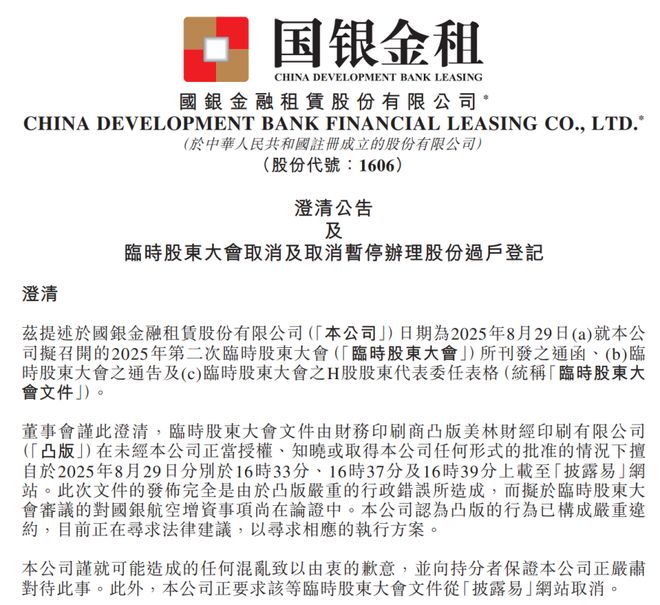 国银金租公告显示,8月29日,公司召开了董事会会议,表决半年度业绩、中期分红等议案,并在8月29日披露半年报。结合国银金租“误发布”公告及后续澄清公告,增资国银航空可能也是当日董事会讨论或计划讨论的议案之一,但最终此事无结论,且不知何原因触发了公告“乌龙”。